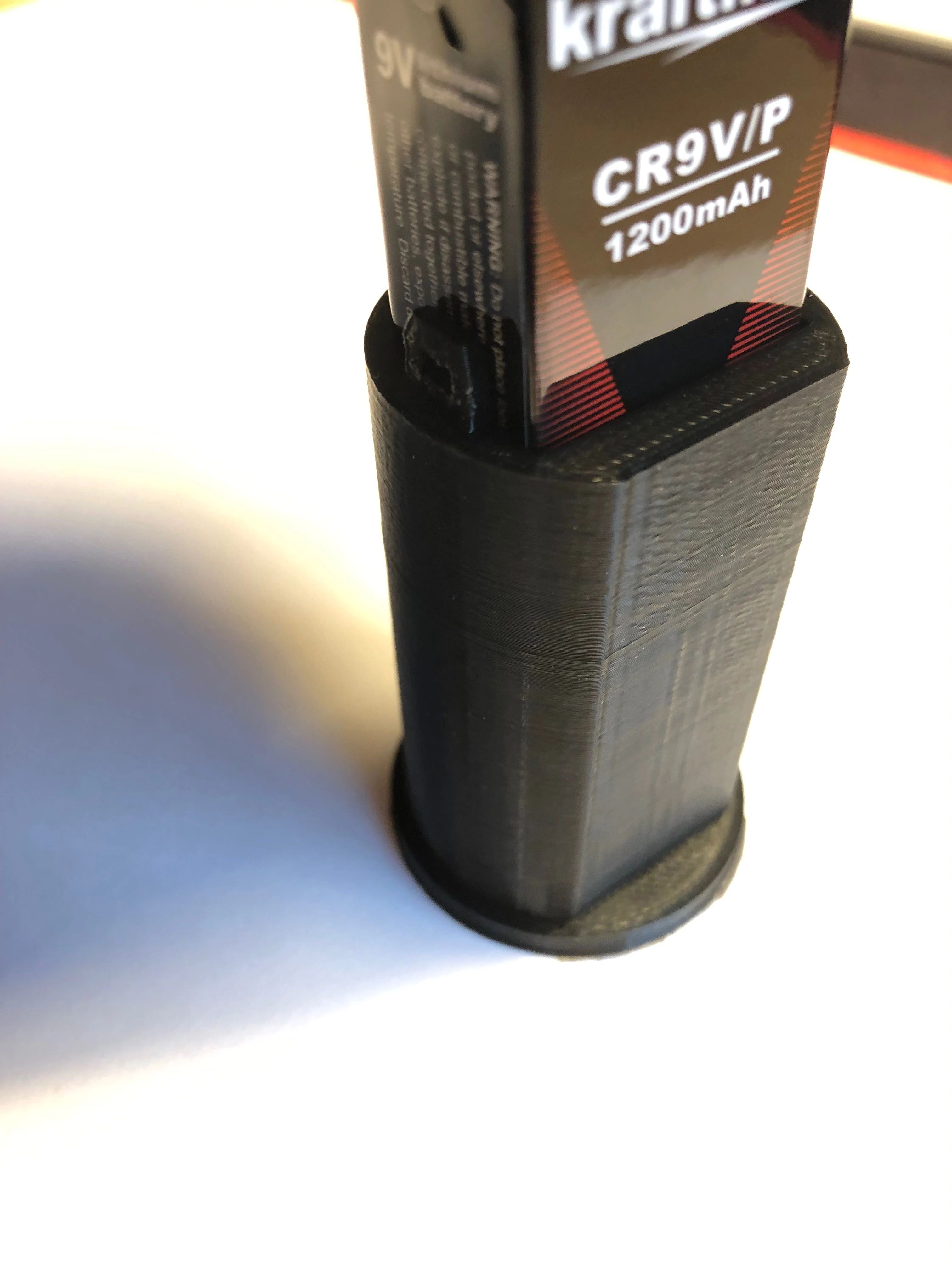 Weil wir uns dafür entschieden unsere Taschenlampe mit einem 9 Volt-Block zu betreiben, mussten wir natürlich auch ein neues Design für das Batteriefach entwickeln.