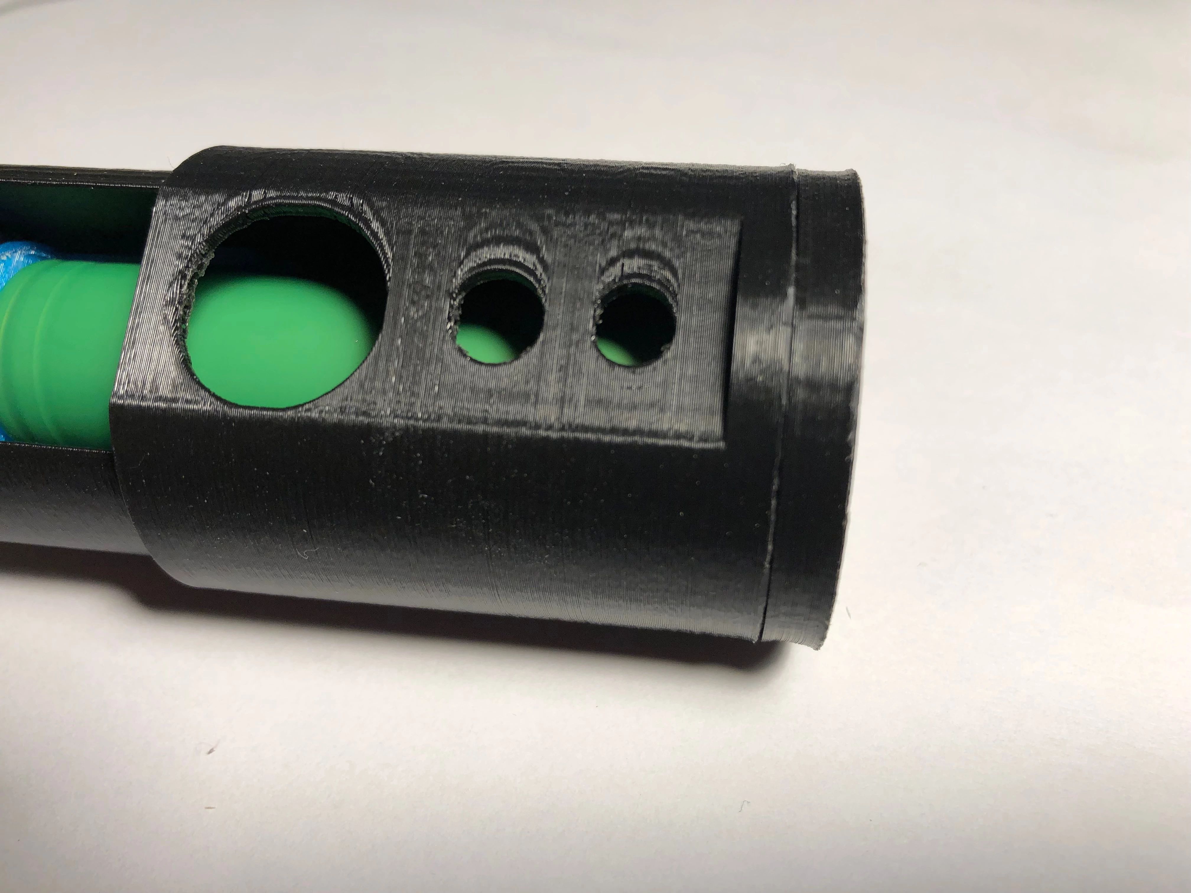 Leider war dieser sowohl zu kurz und hatte einen zu schmalen Durchmesser. Also druckten wir einen weiteren, diesmal besseren Zylinder.