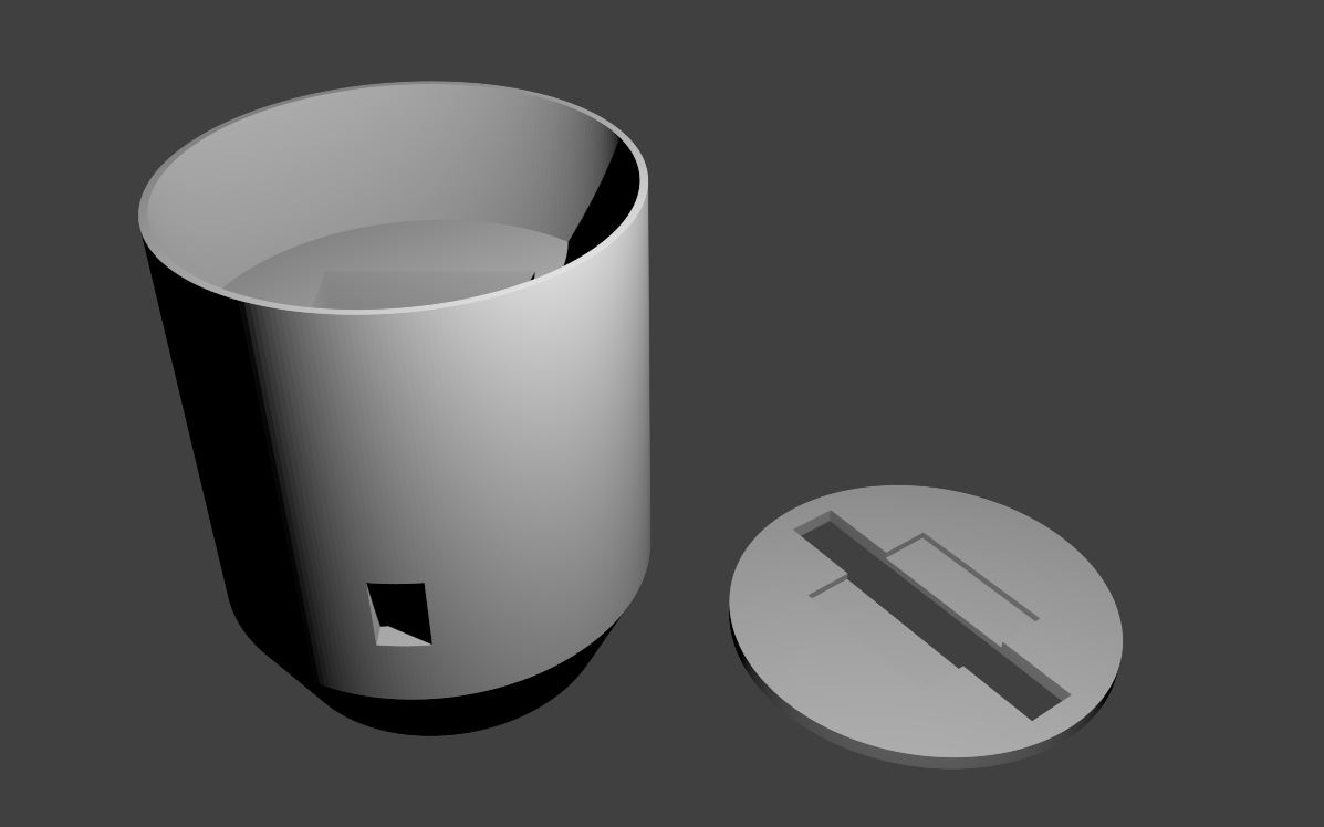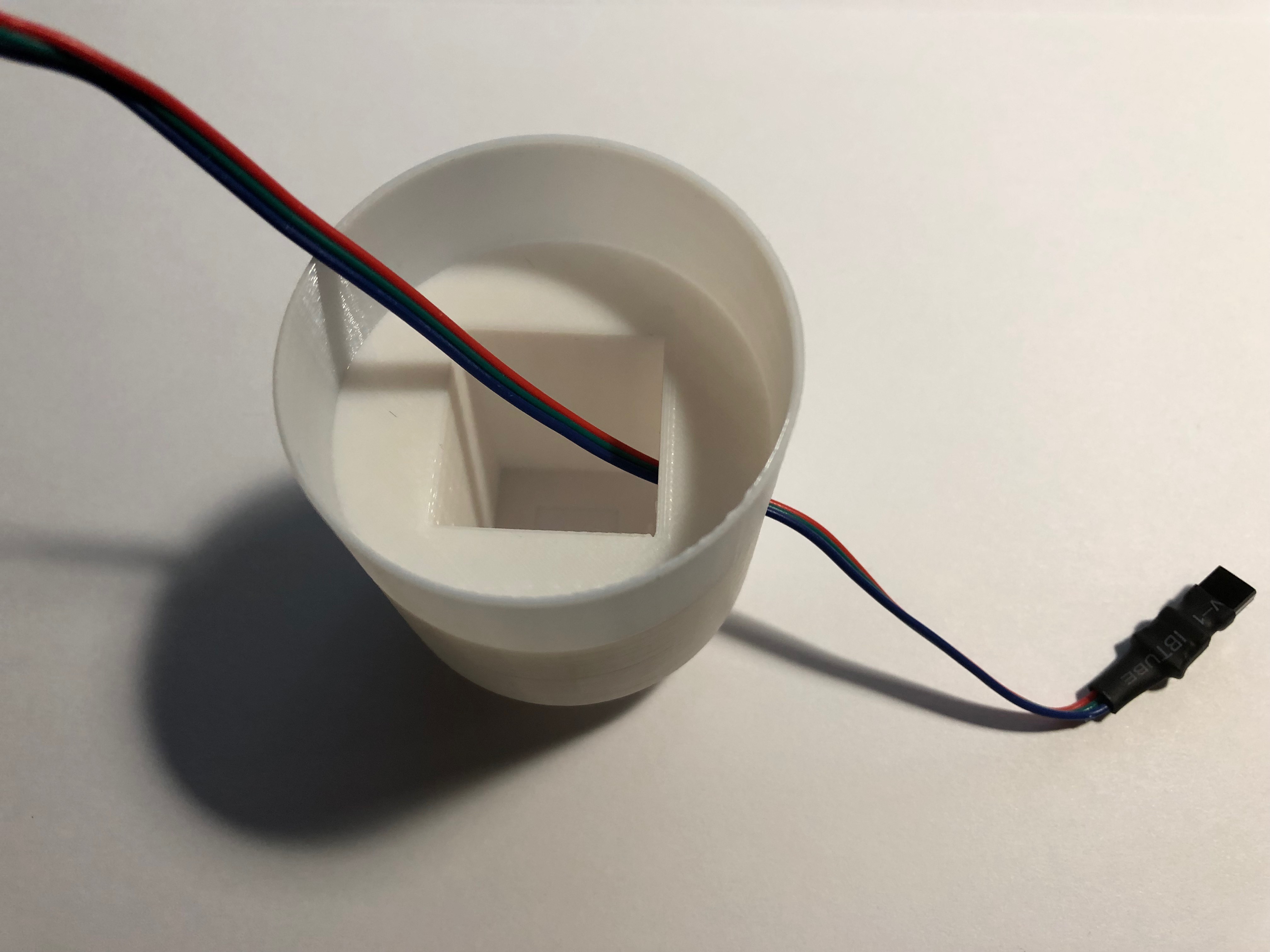 Der Deckel hat einen quadratischen Ausschnitt für die LED und einen länglichen Ausschnitt für die Kabel.
