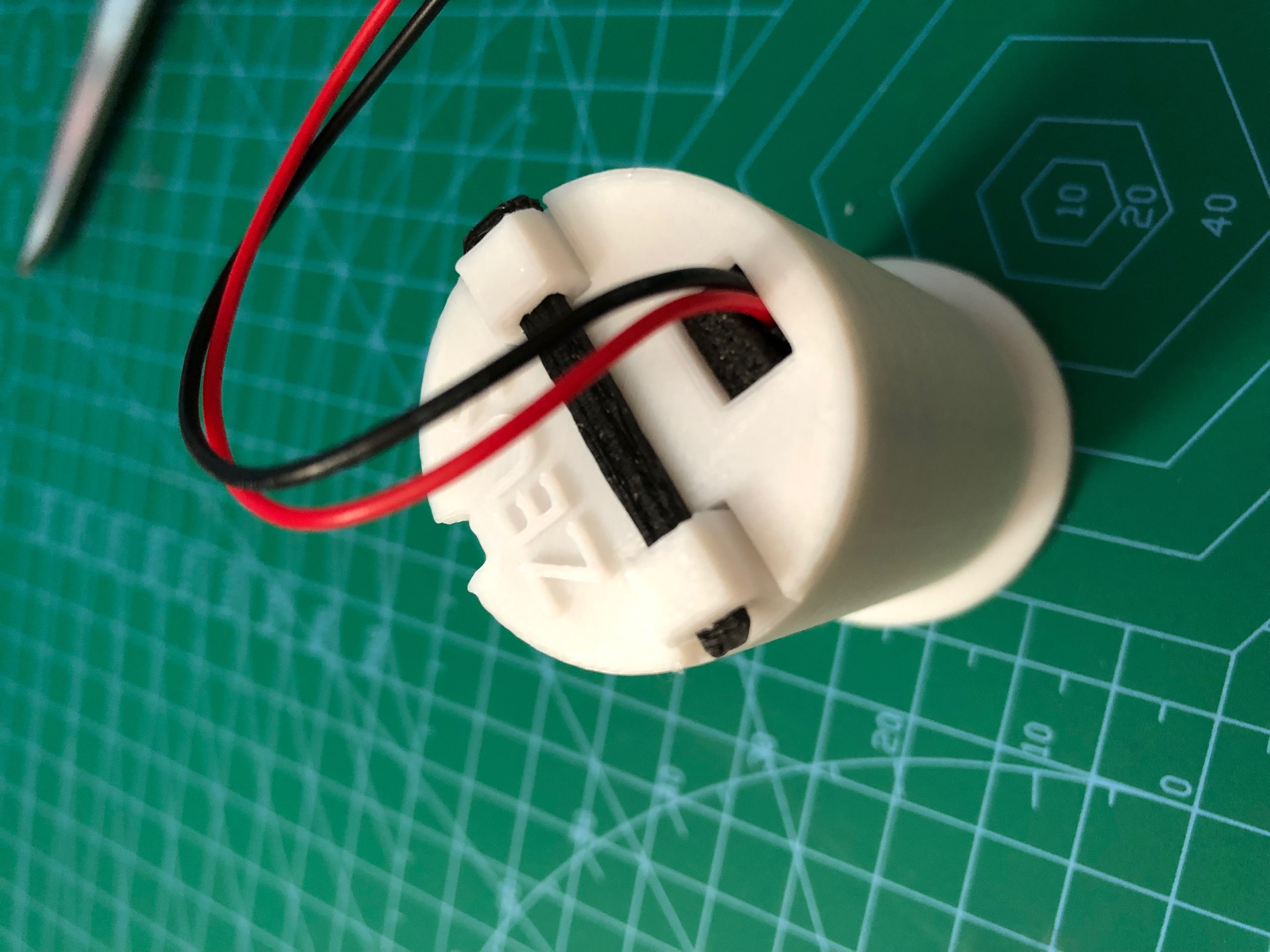 Eine Krokodilklemme und ein schnell eingelöteter Knopf war dabei unabdingbar.
