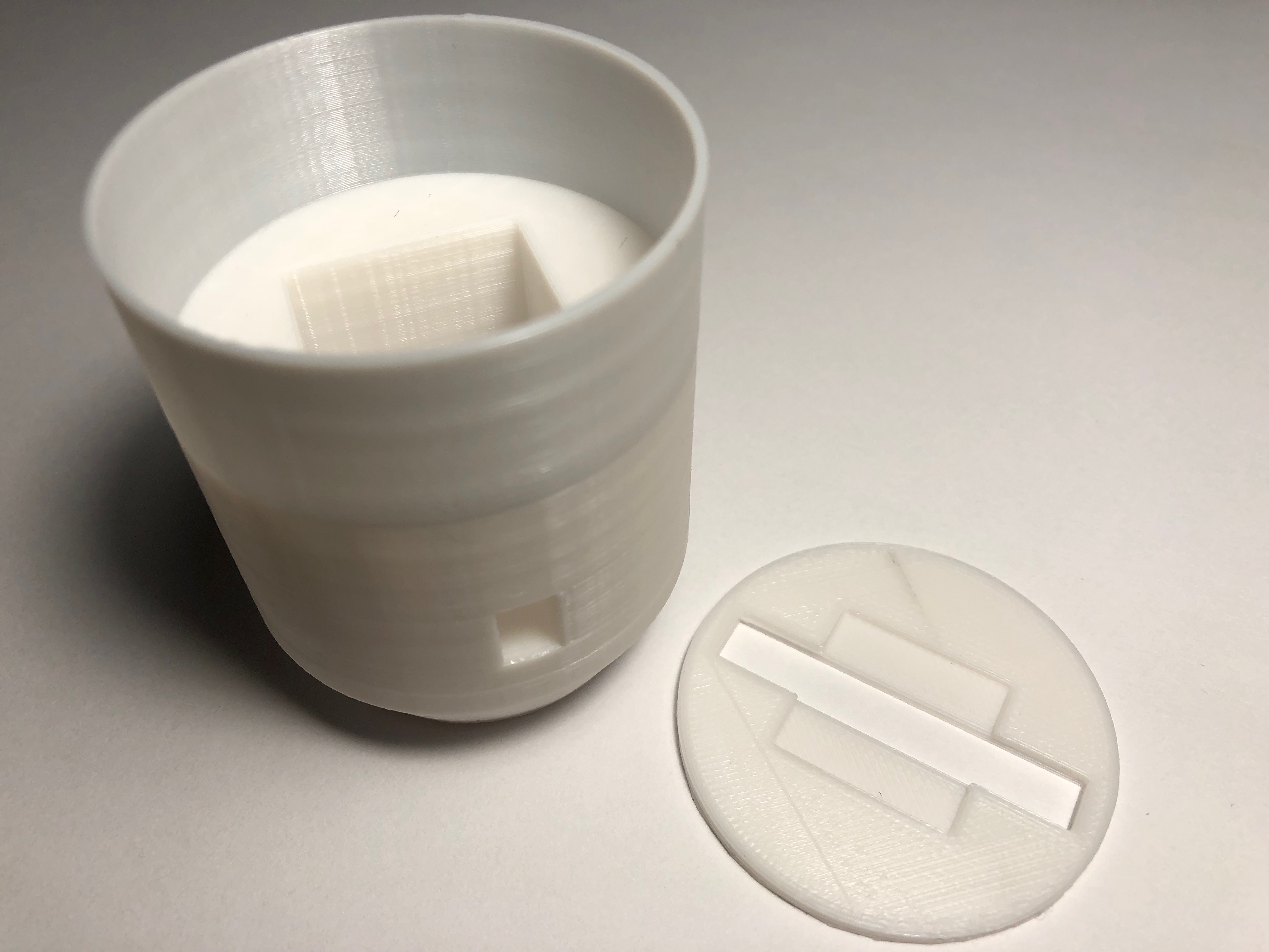 Der Druck hat perfekt funktioniert. Der Deckel passt lückenlos hinein und die LED passt in den Deckel. Auch der Sensor hat perfekt in das Loch gepasst.