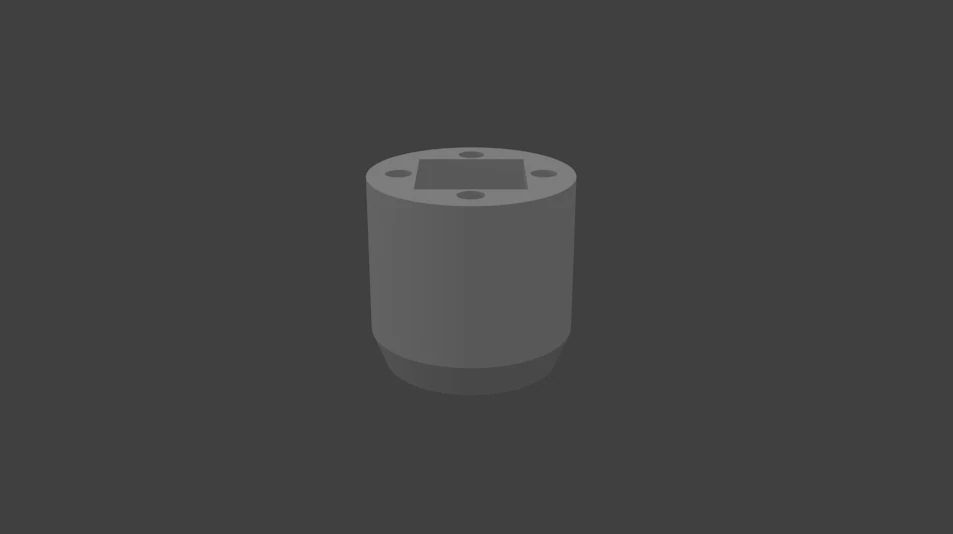 Der Kopf der Taschenlampe ist etwas breiter als der restliche Körper. Er besitzt vier Bohrungen mit 2 Millimeter Durchmesser, welche sich nach einem Zentimeter zu 6 Millimeter Bohrungen vergrößern. Der Gedanke dahinter ist, dass Schrauben durch den breiten Teil eingesteckt werden und in den dünneren Teil eingeschraubt werden. Sie sollen den Kopf am Körper fixieren.
