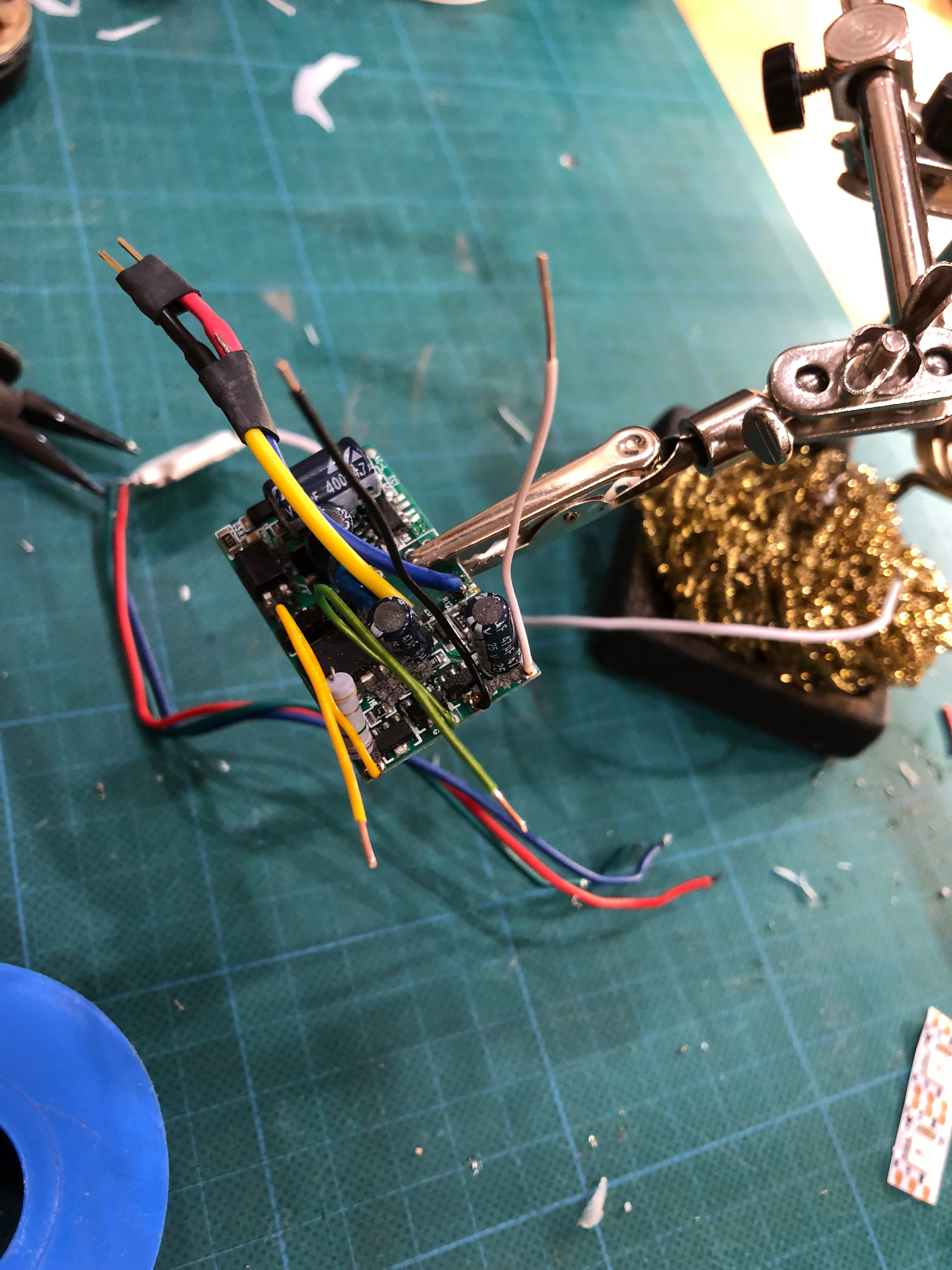 Als Erstes begannen wir damit die Kabel von der Platine zu kürzen und Konnektoren anzulöten.
