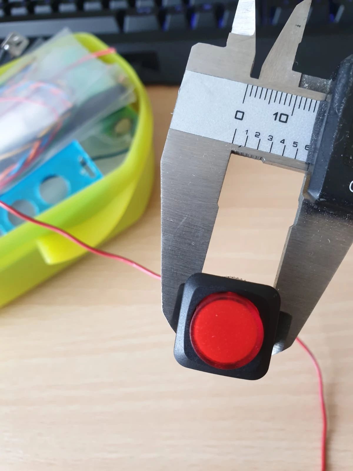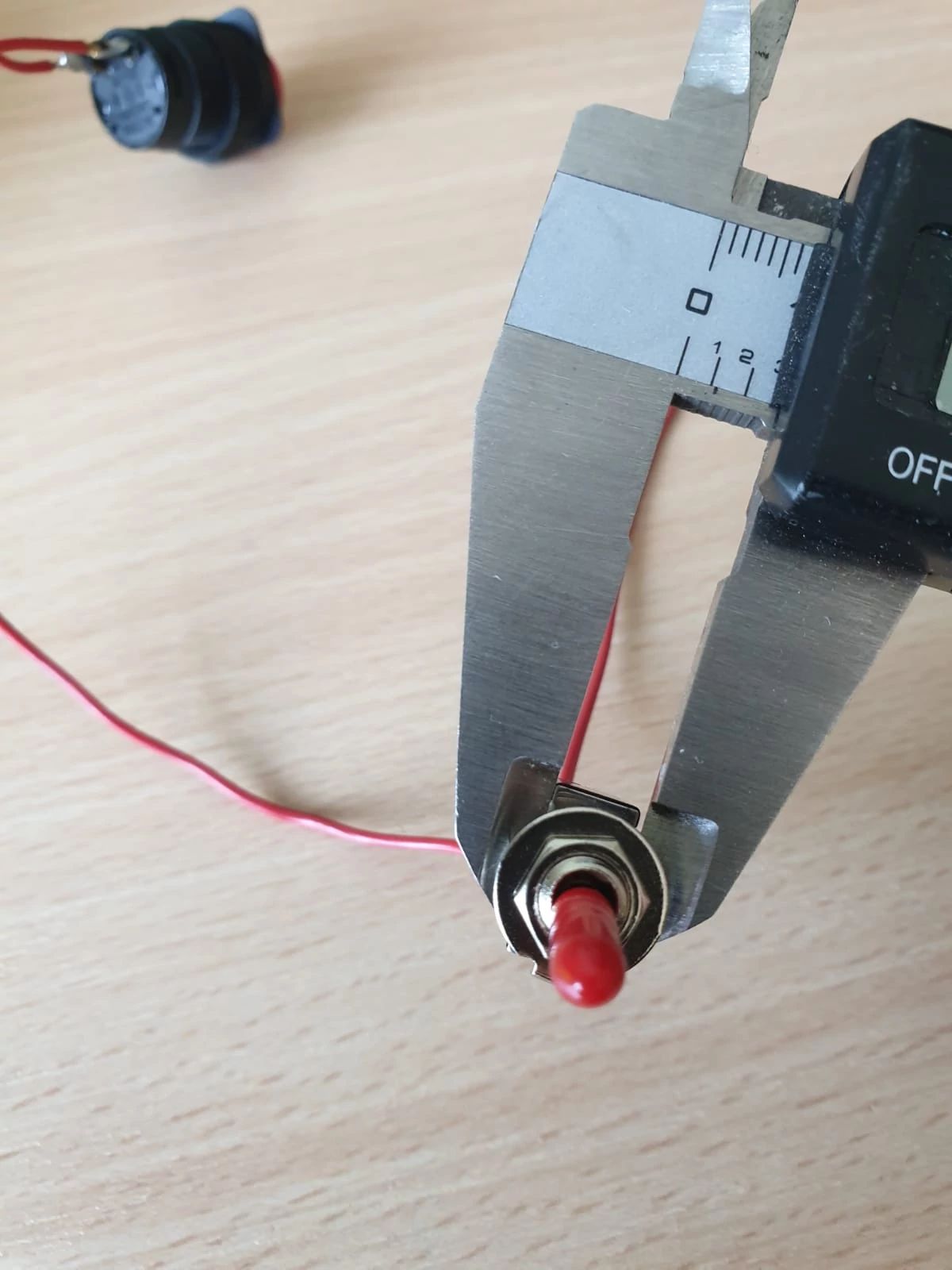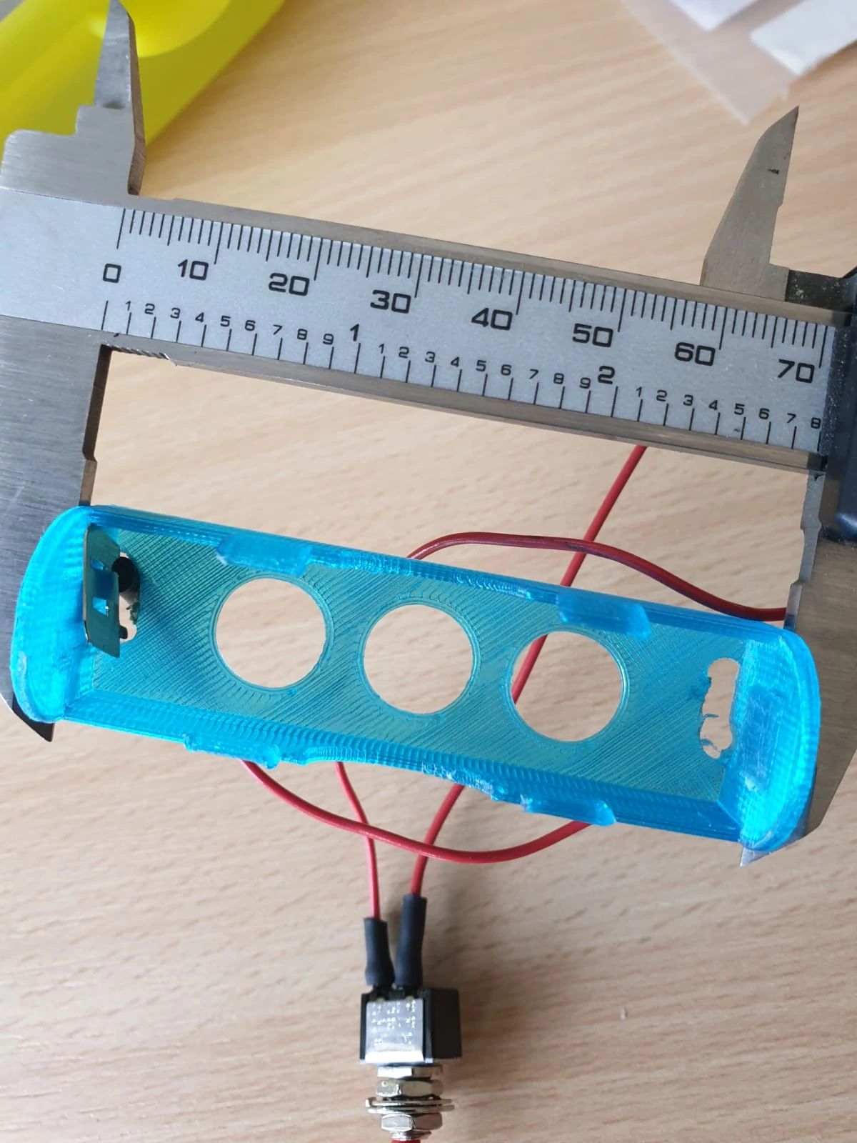 Die LED und der Kippschalter haben sehr gut in die Ausschnitte gepasst. Der Ausschnitt für den Knopf war ein bisschen zu groß.
